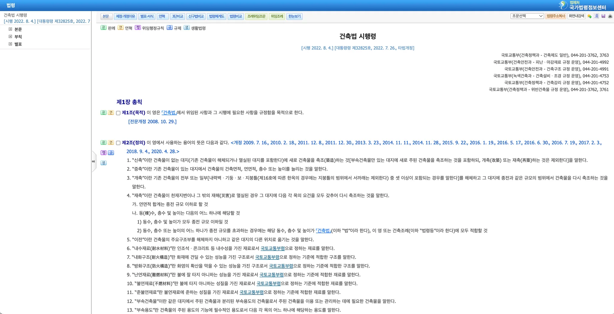 여기 건축법 시행령을 볼 수 있는 토지이음 링크와 사용방법이 있어요